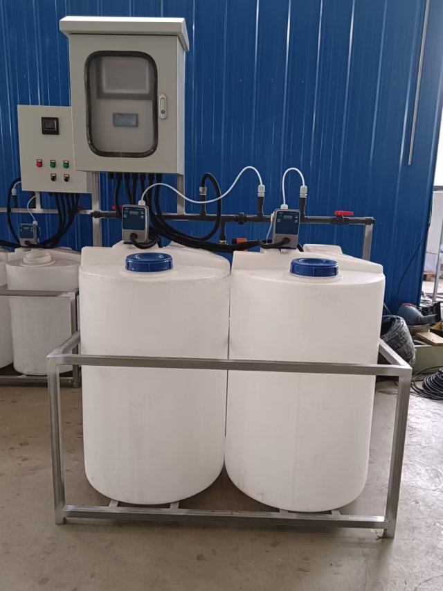 全自動加藥裝置采用時間程序控制,此控制方式無需儀表的支持,首先根據(jù)系統(tǒng)的運轉(zhuǎn)需要設(shè)定自動加藥的周期、加藥量、加藥時間和加藥頻率。在以后的系統(tǒng)運轉(zhuǎn)過程中,到加藥周期,計量泵自動打開加藥,加到規(guī)定的時間計量泵關(guān)閉;到排污周期,計量泵停止加藥,排到規(guī)定的時間后,計量泵繼續(xù)開啟,補充排污損失掉的藥劑,把系統(tǒng)的含藥量維持在正常的水平、加到規(guī)定的時間計量泵關(guān)閉。